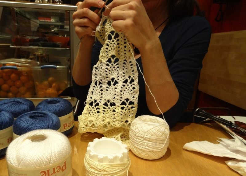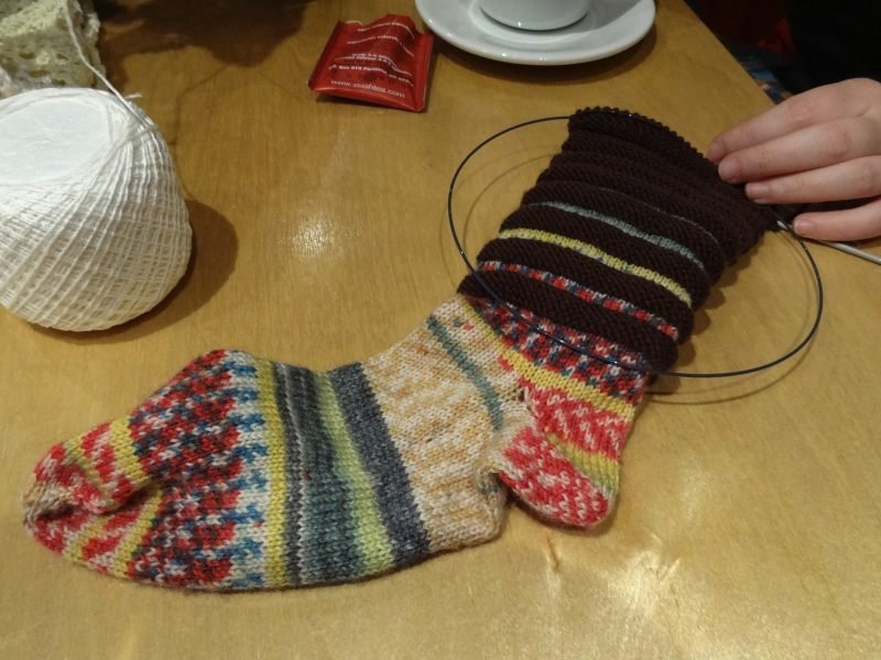 Je m’amuse donc à essayer de pousser les murs des cafés qui nous accueillent pour essayer de satisfaire un maximum de personnes. Nous étions donc 20 tricoteur/euses autour des tables. La semaine prochaine compte déjà 31 personnes … Est-ce que je vais finir par connaître tous/toutes les tricoteur/euses de Montréal ?^^