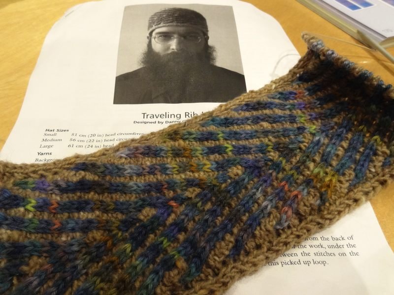 Marine tricotait un bonnet avec un point que je ne connaissais pas du tout. Les photos des hommes portant ce chapeau sur Ravelry font pas mal peur par contre !