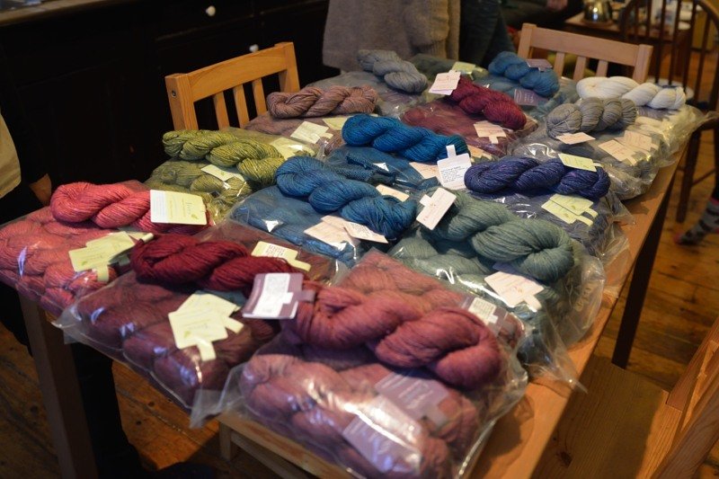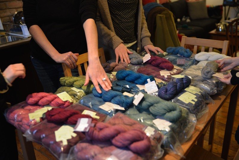 Heureusement que les filles ont pris les devants. Nous nous sommes toutes retrouvées autour de la laine que j’avais disposée sur la table pour pouvoir l’examiner à la lumière du jour. Puis, quelqu’unes d’entre nous se sont laissées tenter par la Road to China et la Terra.