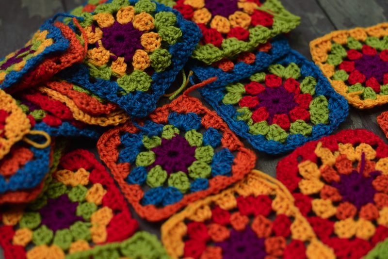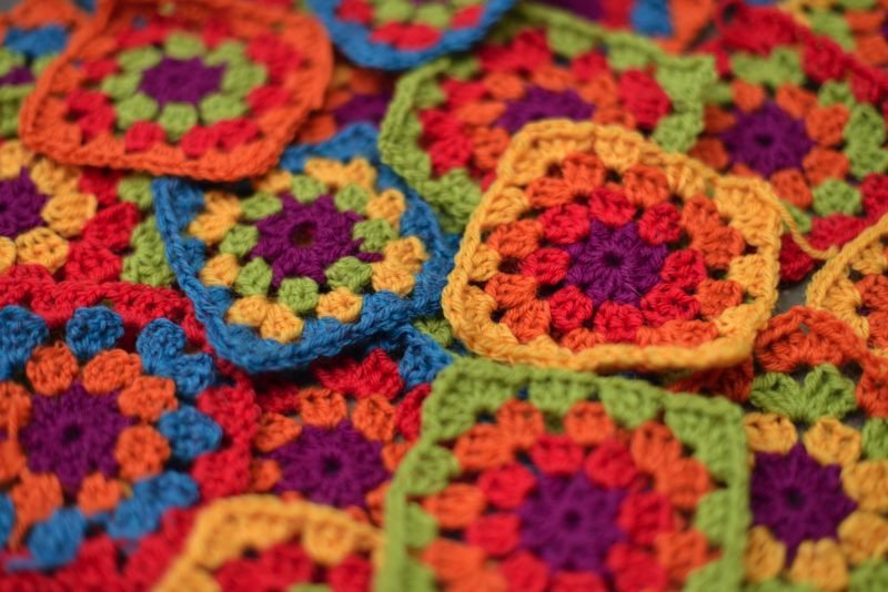 Je peux faire mes granny n’importe où (parc, métro, sofa, etc.), dans n’importe quelle position (assise, couchée, debout) contrairement au tricot qui demande plus de dextérité pour tenir les deux aiguilles et le fil.