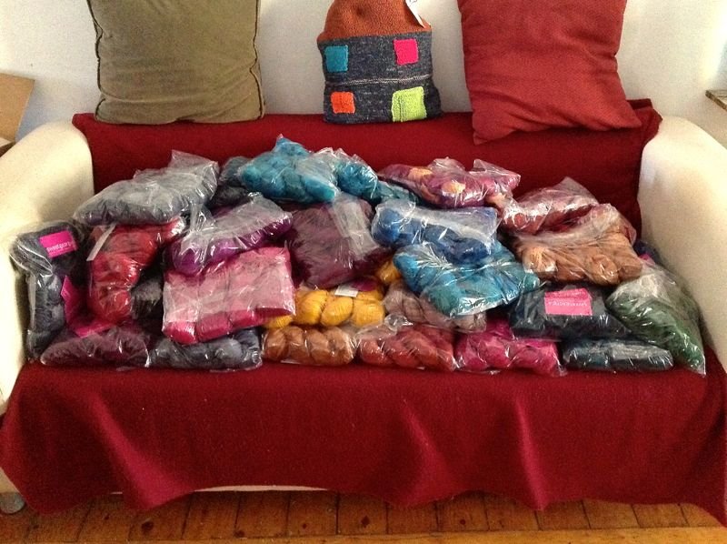 Désolée pour la mauvaise qualité, mon photographe n’était pas à la maison… vous verrez donc bientôt en magasin la Tough Love Sock (colori : Cayenne, Cherry, English Ivy, Ginger, Honey Fig, Oceanside, Orchid, Riptide, Slate, Tourmaline), Superwash sock (coloris : Blackberry, Grape Jelly, Raspberry, Saffron, Tumbled Stone) et Superwash worsted (coloris : Blackberry, China Doll, Oceanside, Riptide, Saffron, Slate, Tourmaline). Toutes sont à 24$ la balle de 115g tax free.